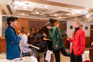 次に訪れたのは、末澤が『淡路の○○』と言い切る『淡路ワールドパーク ONOKORO』。キャラクターである『おのりん&ころりん』と記念撮影をしたあとは、マイナス20度の世界を体験できるアトラクションに服を脱いで半袖となって入るなど、大はしゃぎ!