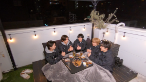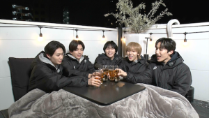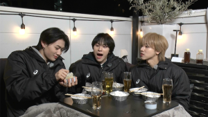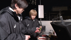 今回のご褒美企画では都内某所でバーベキューを実施!本日から独占配信がスタートした前半では、アツく楽しく実施の予定がなんと当日の東京は0度に達する寒さ!しかしそんな中、メンバーたちはこたつの中でまったりと「こたつエピソード」を話すほか、肉が焼けた後は食べながらのBOXトークも実施!「このメンバーのココを直してほしい!」では直弥の奇行をメンバーが大暴露!?さらに「自分だけが知っているメンバーの秘密」など、必見のぶっちゃけトークを繰り広げます